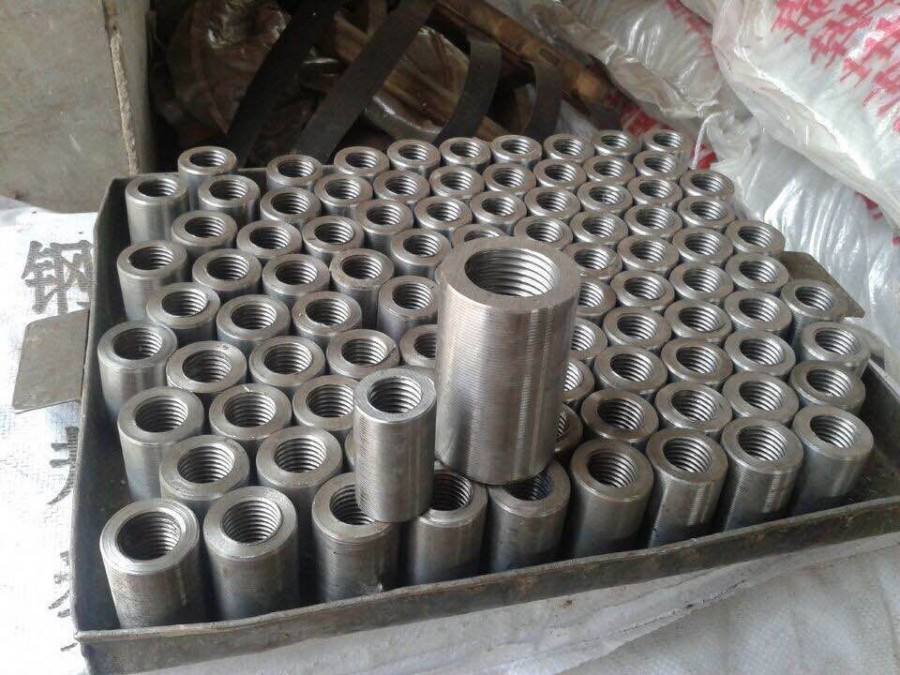 钢筋套筒外形小巧,使用起来也非常简单,只要预先在套筒内部打磨出螺纹,在利用滚轧工艺,在钢筋的端部同样加工出螺纹即可,如此一来,两根钢筋就可以从套筒两端旋入其中,就可以充当一种钢筋使用。